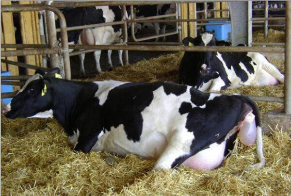 将出现产犊征兆(举尾、尿频、起卧不安、漏乳等)的牛及时转入产房,在产床上进行分娩。注意在转群之前发现浆泡或浆泡破裂的牛禁止转群。