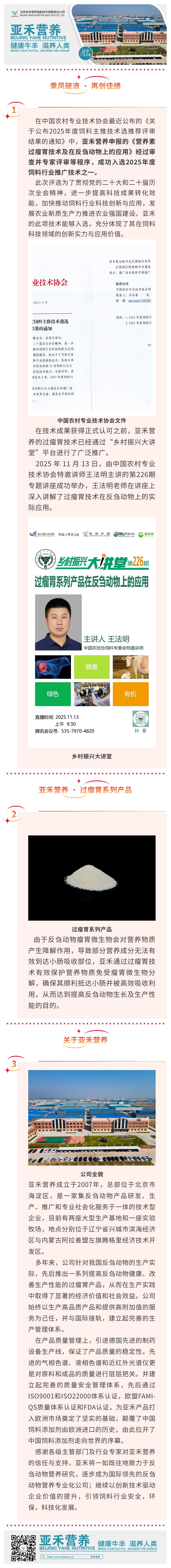 乘风破浪 再创佳绩 | 亚禾营养“营养素过瘤胃技术及在反刍动物上的应用”入选2025年度饲料行业推广技术名录